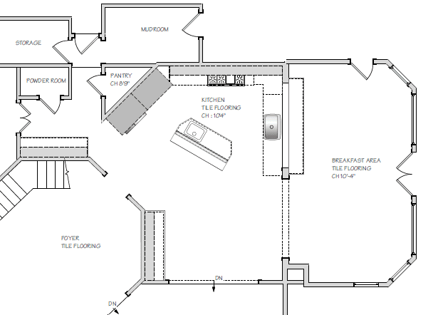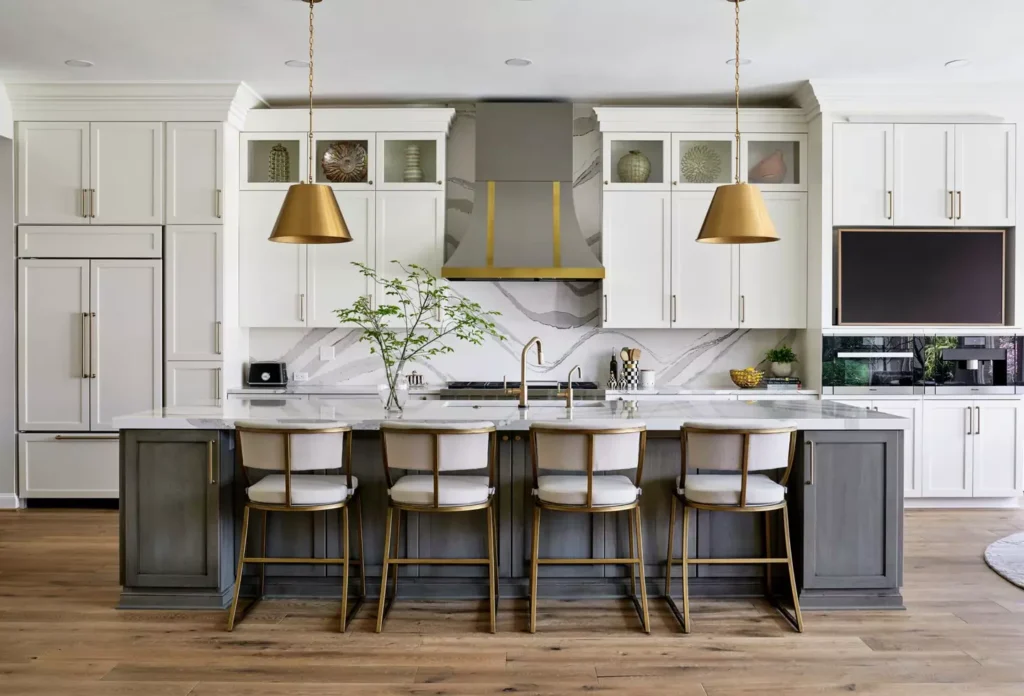 I’m excited to share this elegant and stylish kitchen makeover. It’s an amazing transformation – what was once a more traditional, closed-off space is now bright, open, and modern. Below, you’ll see the full journey: the existing plan and before photo, the proposed drawings, the renderings that guided the design, and the stunning finished project.